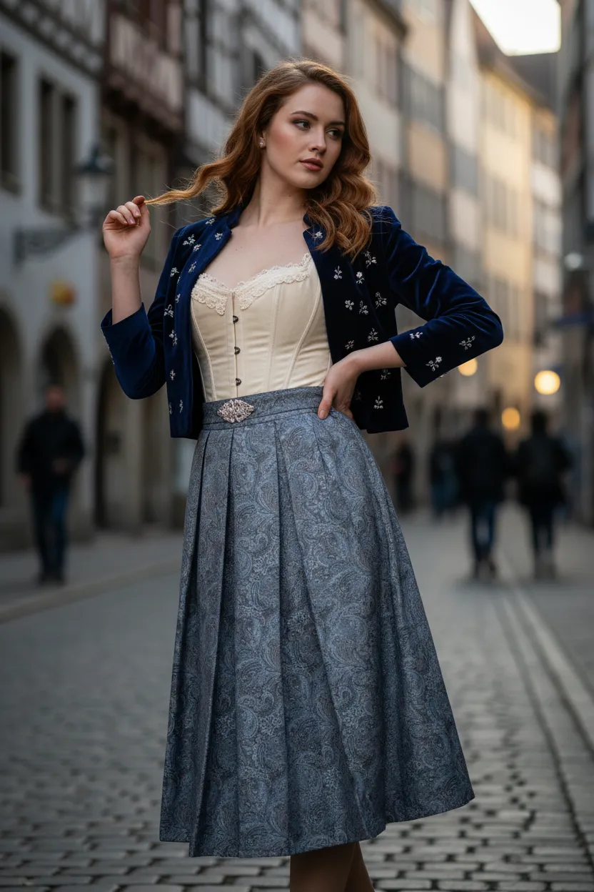 Today, German Trachten is closely associated with cultural events such as Oktoberfest and traditional folk festivals. While the garments have adapted to modern fashion trends, they still maintain their distinctive elements, including detailed embroidery, decorative buttons, and structured silhouettes. Trachten remains an important symbol of German heritage, craftsmanship, and regional identity, celebrated both within Germany and internationally.