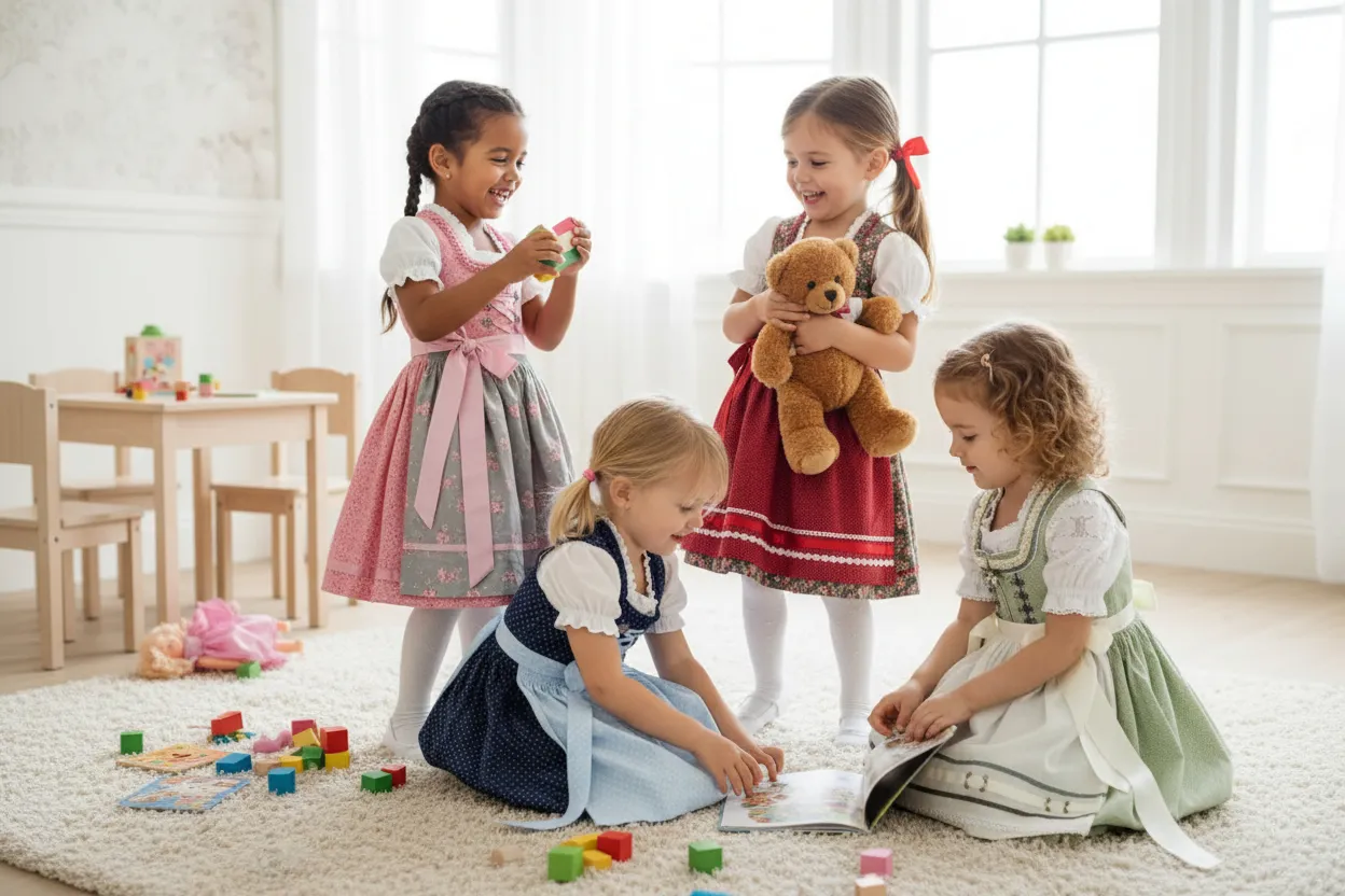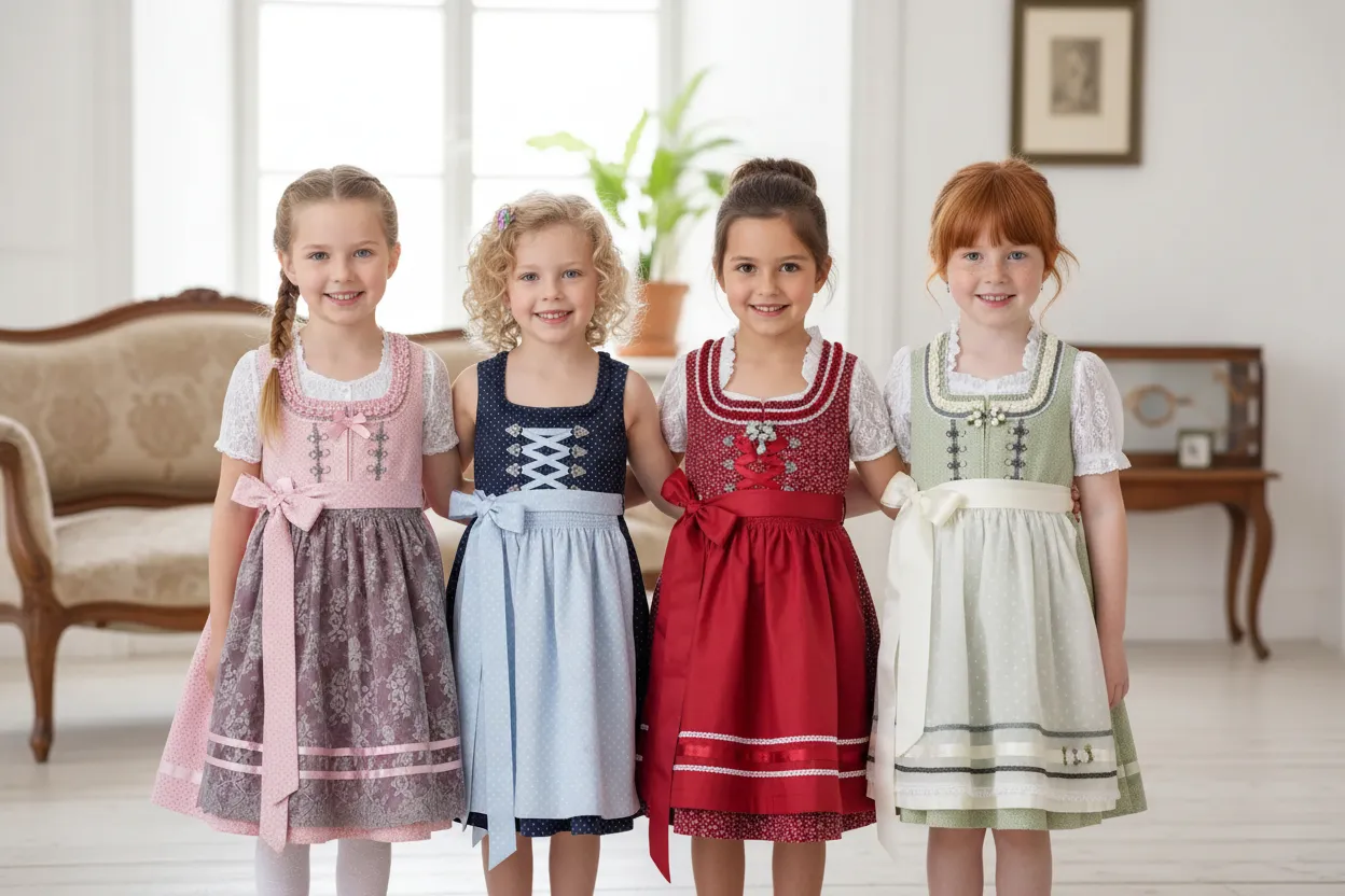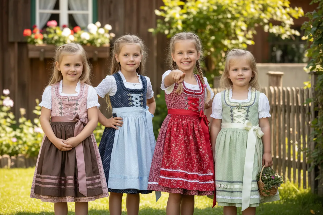 German Trachten refers to the traditional clothing worn in various regions of Germany, particularly in Bavaria and the Alpine areas. The word “Tracht” comes from the German term meaning “that which is worn,” and historically it represented the cultural identity of a region. In the 18th and 19th centuries, Trachten garments such as Dirndl for women and Lederhosen for men were originally everyday clothing worn by farmers, workers, and rural communities. Each village or region developed its own distinctive styles, colors, and embroidery patterns, reflecting local traditions and social identity.